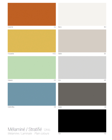 Finitions Plateaux Mélaminés antibactérien ( possible en stratifié antibactérien en option) & Chants