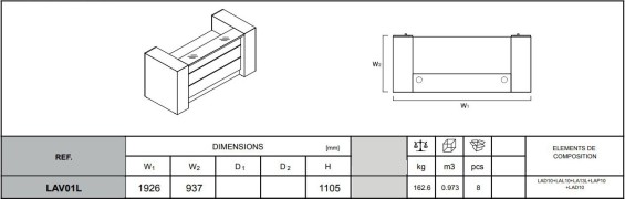 - Top - mélaminé 36 mm + verre LACOBEL 4mm (40mm)