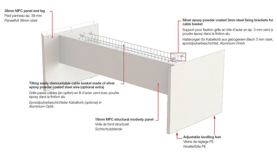 Bureau de direction simple 180 x 90 Pieds Panneaux coupés 45°