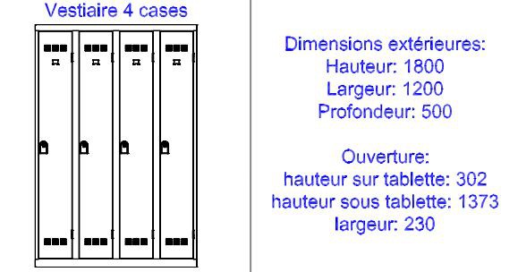 De nombreuses combinaisons sont possibles et ces vestiaires permettent de multiples équipements afin de répondre à tous les besoins, dans le respect des budgets serrés :
