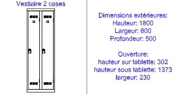 De nombreuses combinaisons sont possibles et ces vestiaires permettent de multiples équipements afin de répondre à tous les besoins, dans le respect des budgets serrés :