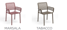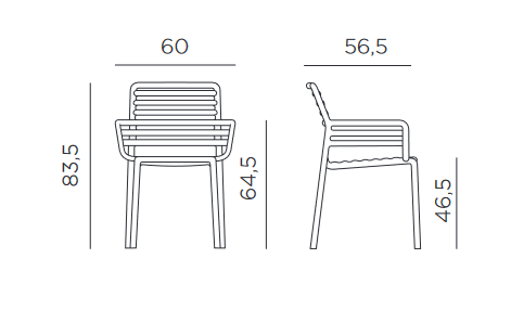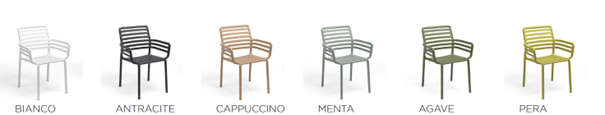 Fauteuil d'extérieur monobloc avec accoudoirs, empilable.