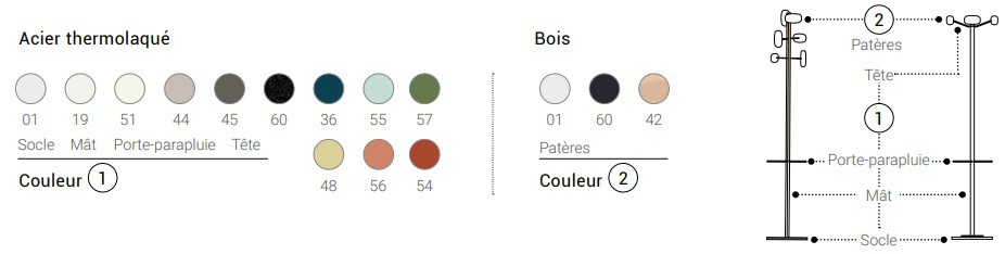 • Support patères en tubes d’acier époxy Ø 8 mm soudés sur le mât en acier