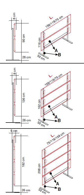 Cloison acoustique autoportante d'une largeur de 119 et hauteur de 208 cm.