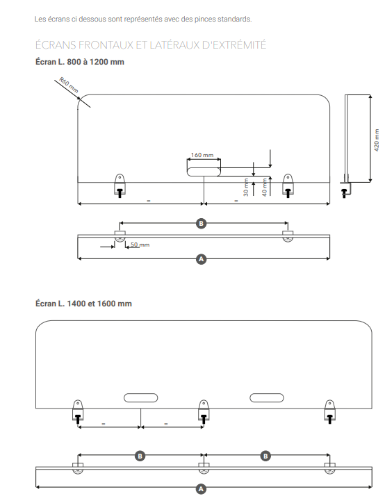 Ecran de séparation acoustique individuel L 120 cm H 42 cm, avec système de fixation par pince standard. Très facile a utiliser